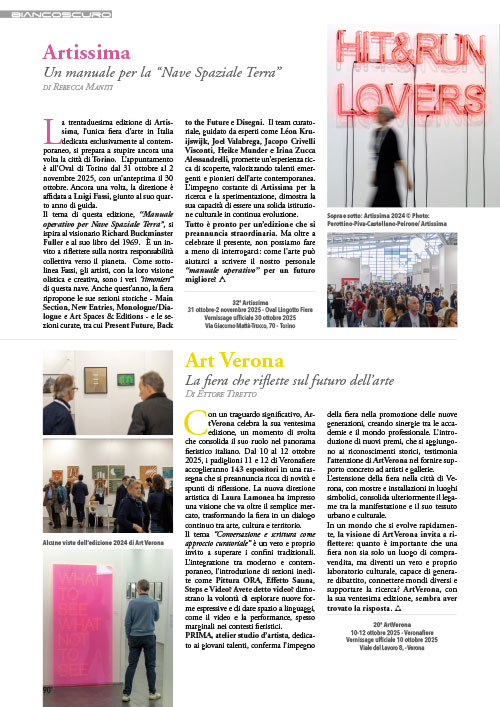 Biancoscuro Rivista d’Arte viene distribuita nelle più famose fiere e importanti mostre d’arte, recapitata in abbonamento a collezionisti, gallerie ed enti culturali.